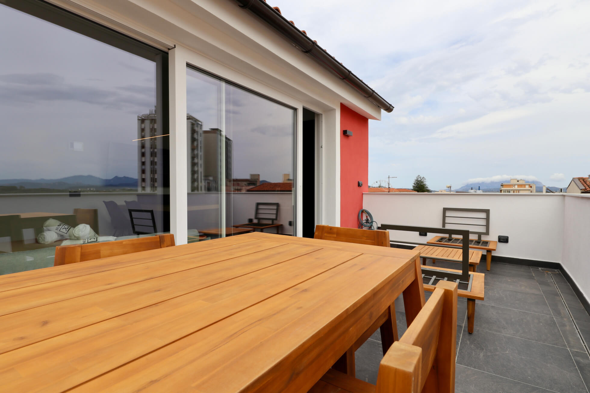 Discover the fully renovated penthouse on Via Cavour 31-B in Olbia. With two elegant bedrooms, a panoramic rooftop terrace, a custom-made kitchen and a king-size bed, this stay offers ultimate comfort and style. Digital self check-in, beach accessories and optional secure parking ensure a carefree holiday. All within walking distance of restaurants, shops and the charming historic center.