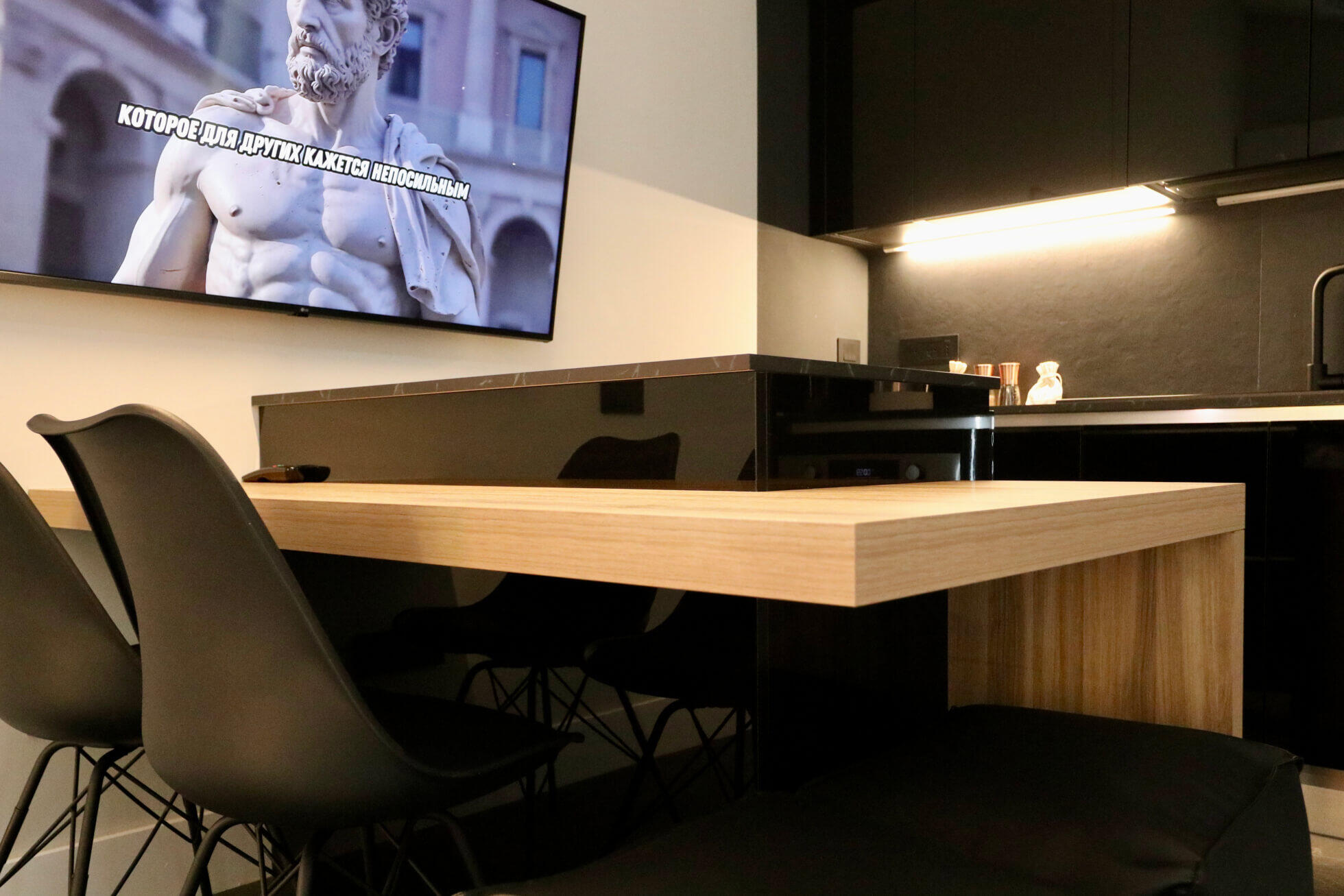 Enjoy the elegance of a custom-designed CREO kitchen for culinary adventures. Relax in the spacious living area, complete with large-screen TVs and ultra-fast Wi-Fi, surrounded by stylish comfort.
